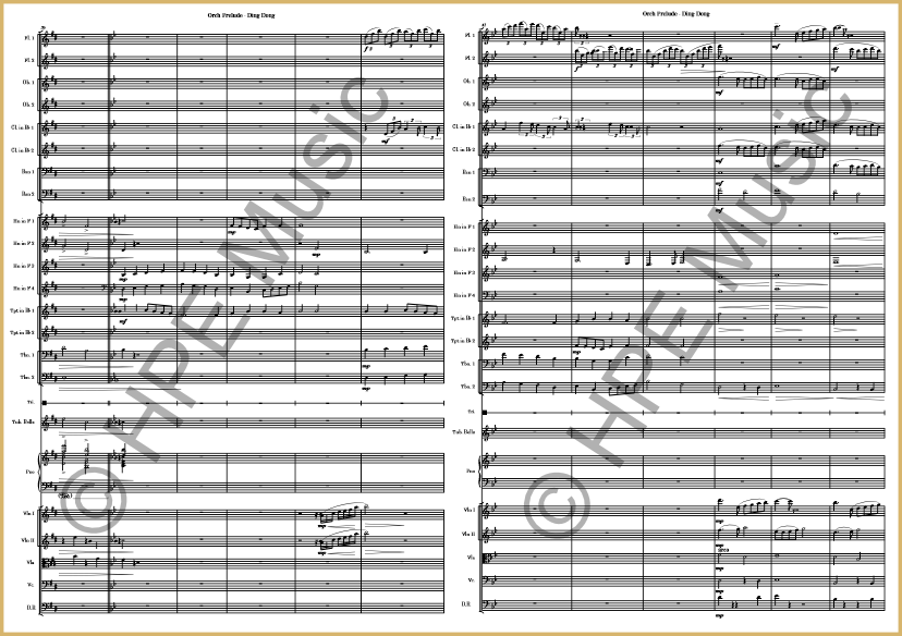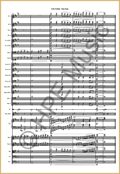 Instrumentation: Full Orchestra ( 2 Flutes, 2 Oboes, 2 Bflat Clarinets, 2 Bassoon, 4 Horns, 2 Bflat Trumpets, 2 Trombones, Triangle, Tubular Bells, Piano and Strings - Violins 1&2, Viola, Cello & Bass).